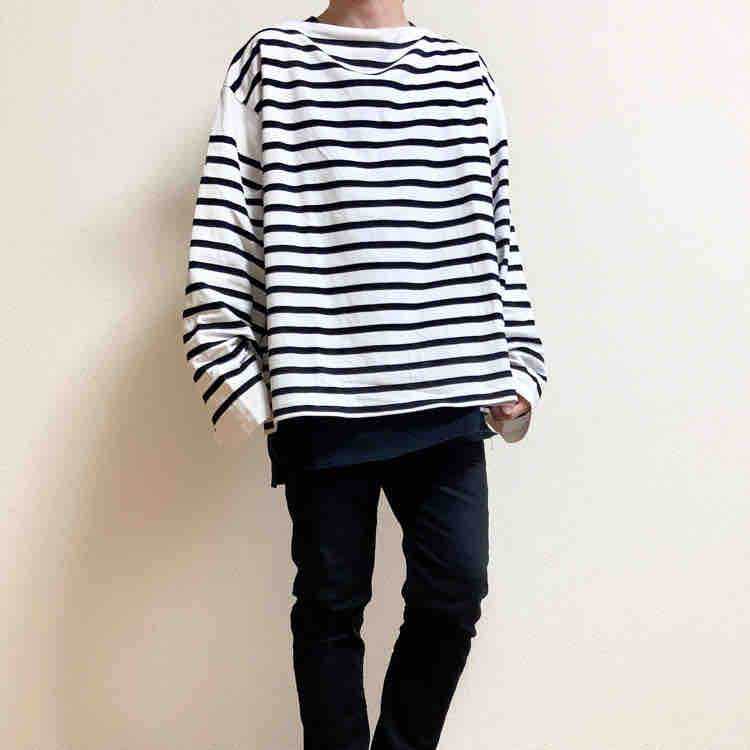 ユルさはあるももの、ボーダーよりもスッキリと大人の雰囲気です。